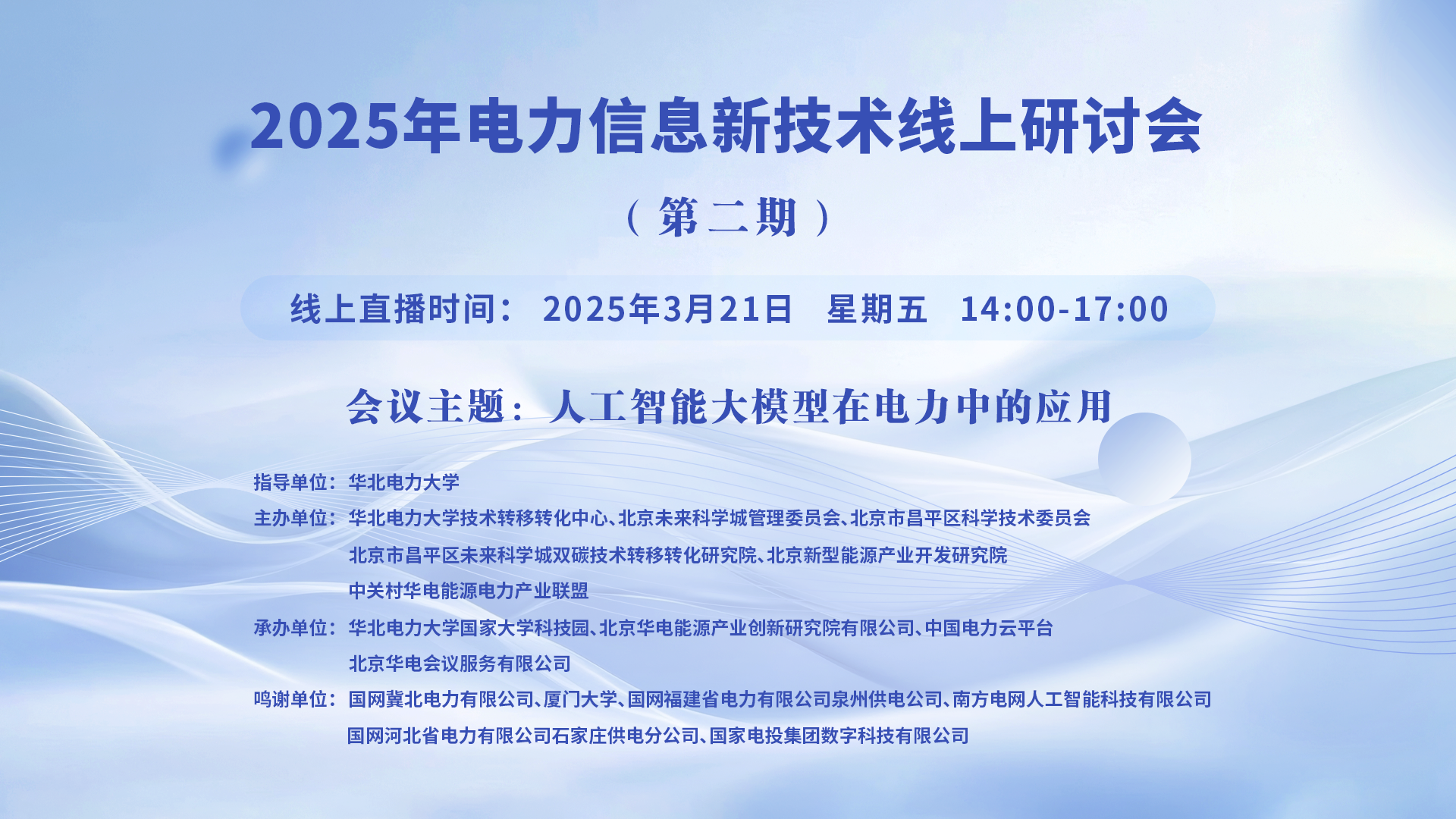 2025年电力信息新技术线上研讨会(第一期)【讲座时间】2025年2月28日 【讲座地点】https://wlwth.xetlk.com/sl/1mzfIC 联系人:姜雯 13331120514 【主讲人】 1、宁雪峰 广东电网有限责任公司东莞供电局技术专家 2、李 冰 华北...主讲人:宁雪峰、李 冰、王振宙、邓 珂、孙智卿 、窦晓亮时间:2025-02-28 13:30地点:线上讲座 -